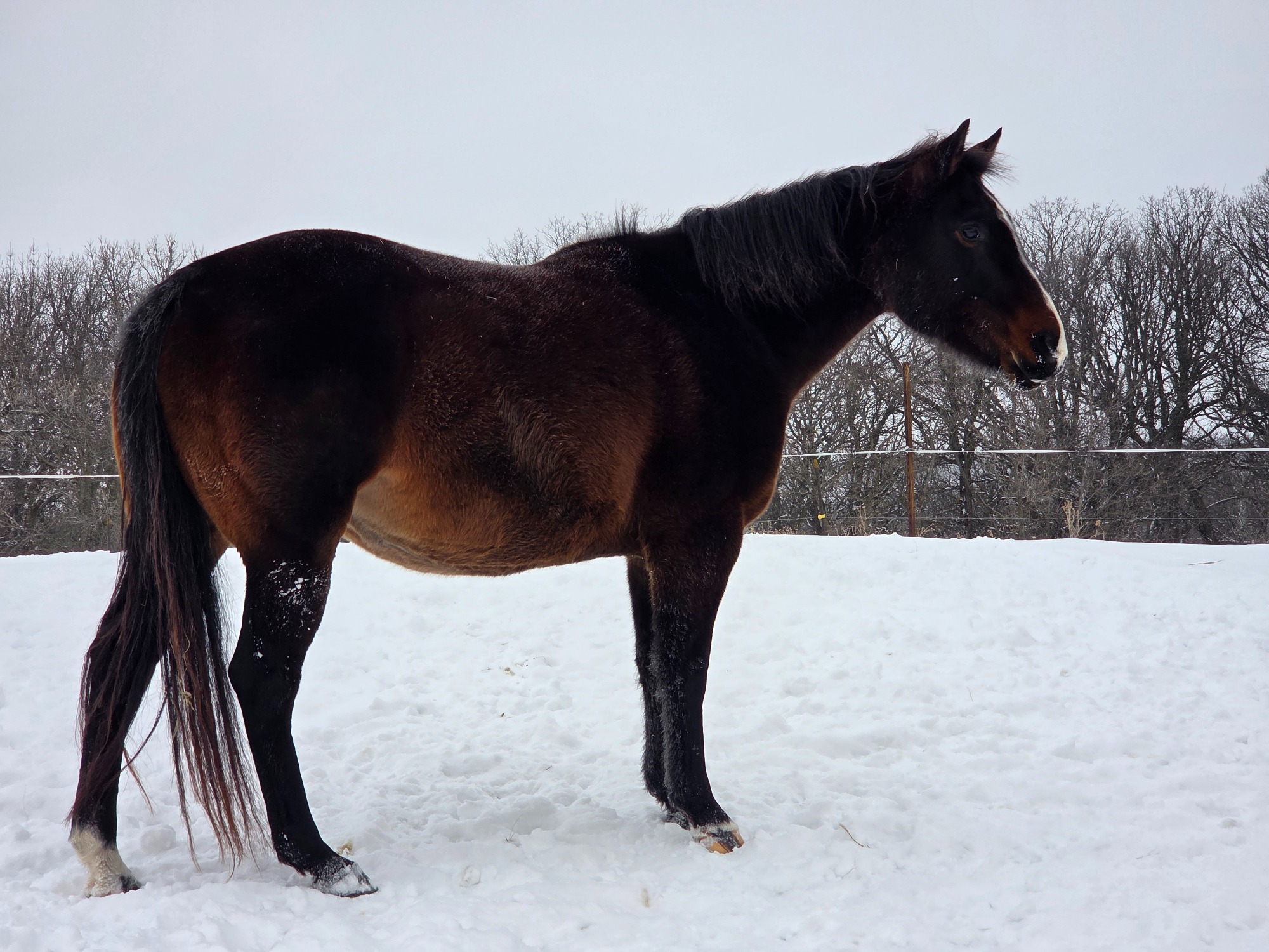 Gambit is a quiet and good mannered mare. She is athletic and smart. She is an easy going ride and flies down the trail. She was injured as a yearling, and therefore is behind in her training. We are looking forward to seeing her mind and athletic ability in her colts.